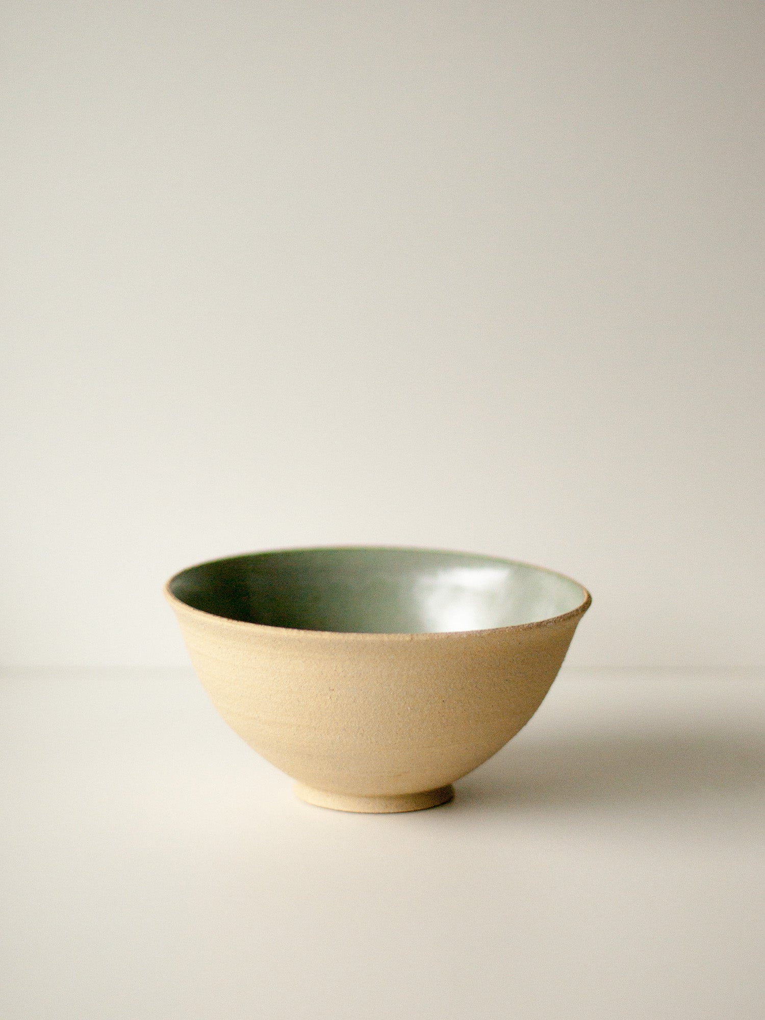 Un grand bol aux bords légèrements évasés. Intérieur émaillé, extérieur en grès brut.